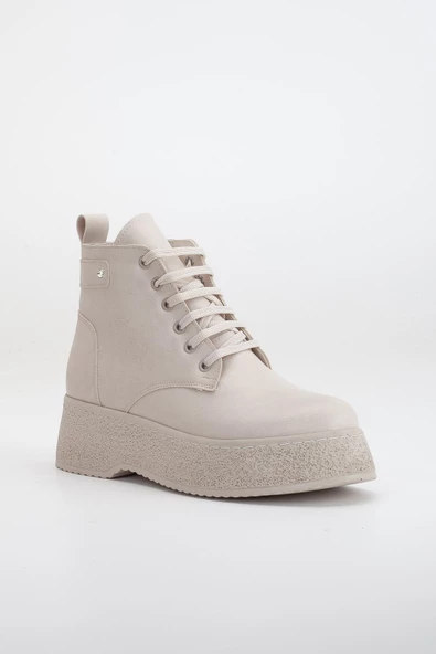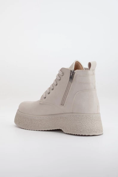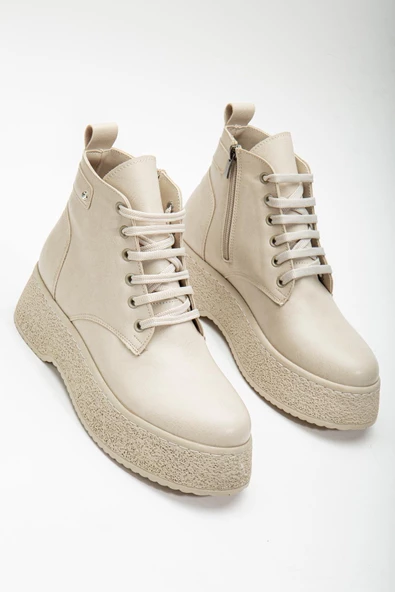Kadın bot Kalın Taban bej Cilt Bağcıklı