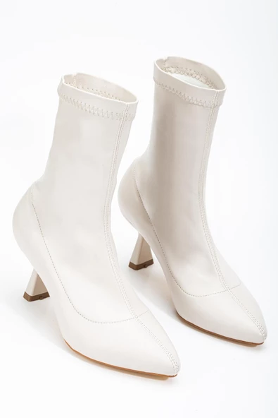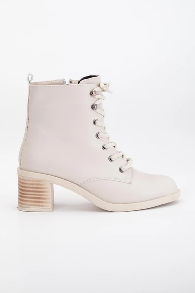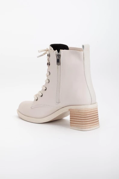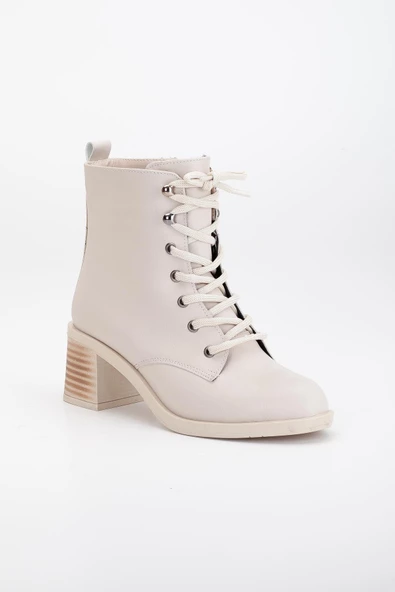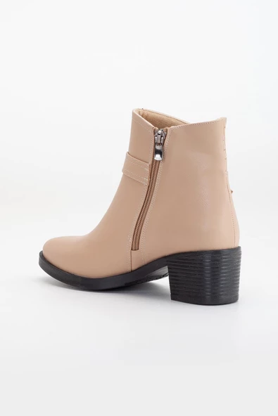 Kadın Topuklu Bot Bej Bağlı Suni Deri