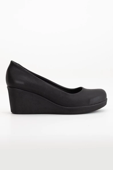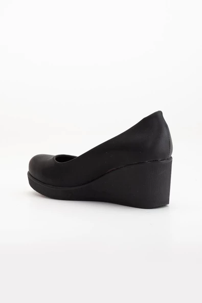 Kadın Dolgu Topuklu Ayakkabı Siyah Yüzüdüz Cilt