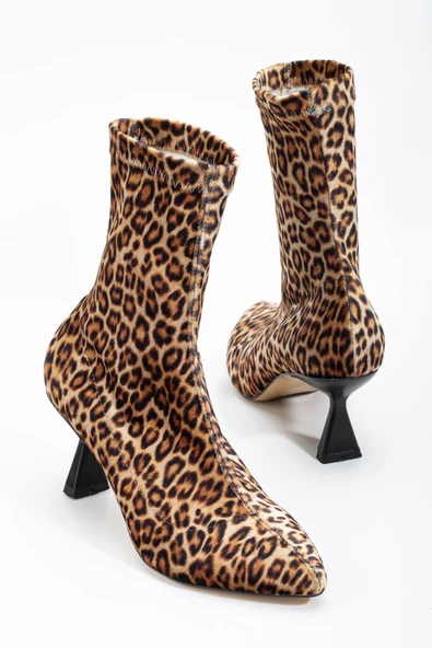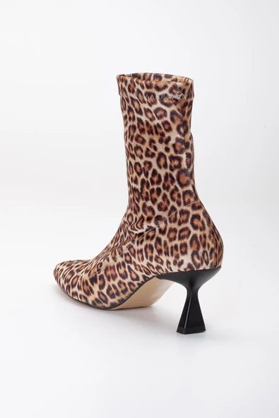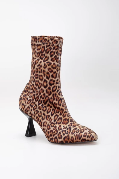 Büyük Numara Kadın Topuklu Bot Leopar Streç Yassı Topuklu