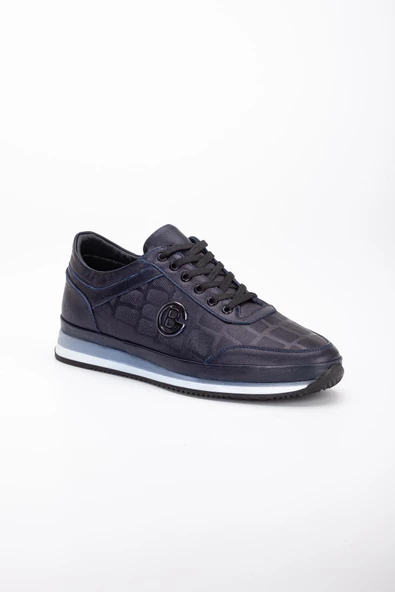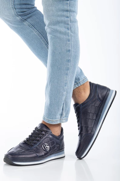 Hakiki Deri Baskılı Deri Tokalı Lacivert Erkek Günlük Casual Ayakkabı