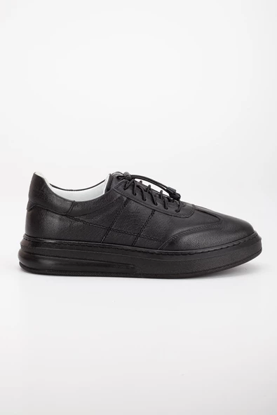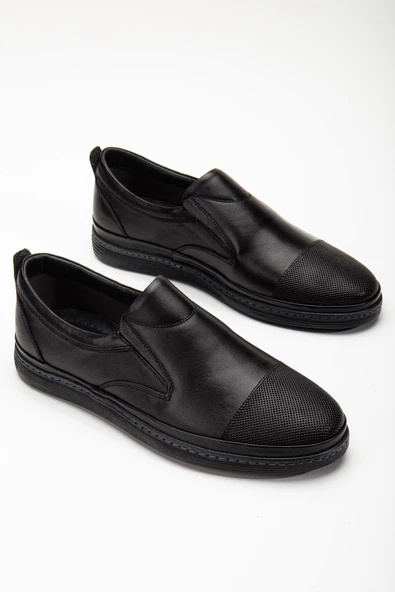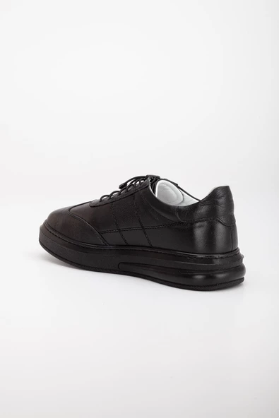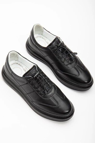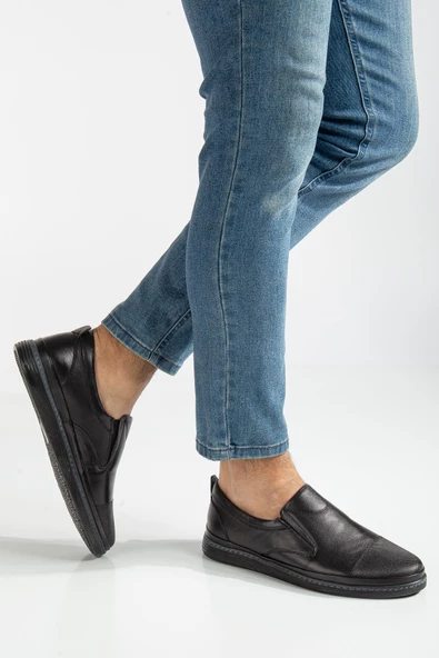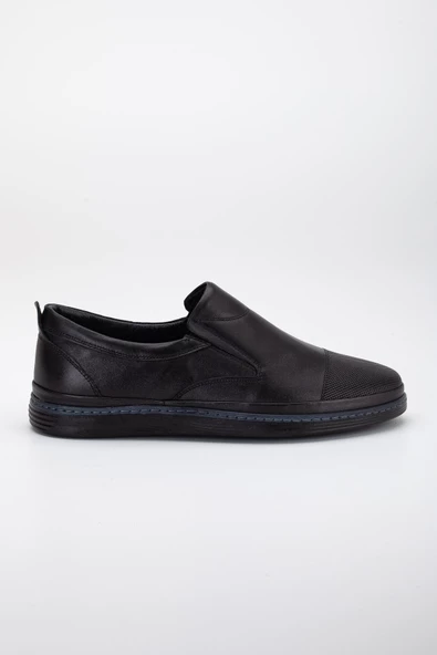 Hakiki Deri Atom Bağsız Taban Dikişli Siyah Erkek Günlük Ayakkabı