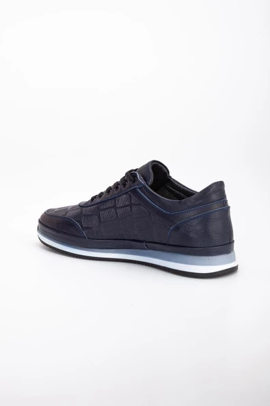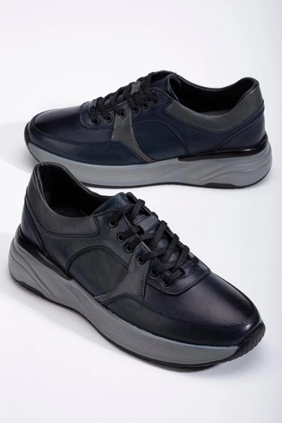 Hakiki Deri Ortopedik Erkek Günlük Ayakkabı Lacivert Kalın Taban Bağlı