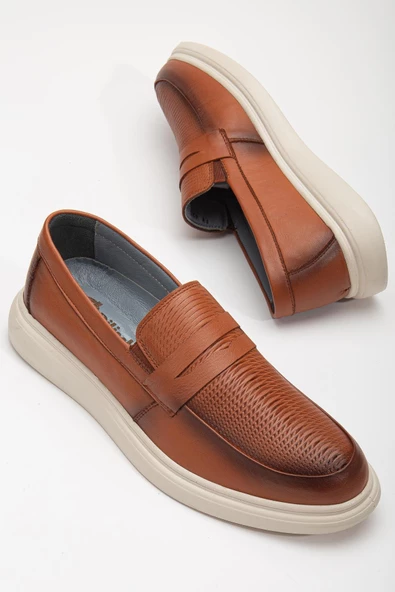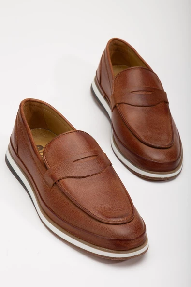 Hakiki Deri Düz Taban Kolej Model Taba Erkek Günlük Loafer Ayakkabı