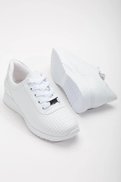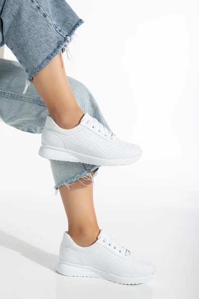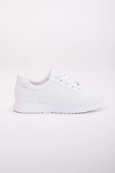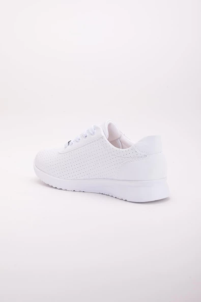 İnce Taban Bağlı Cilt Beyaz Kadın Spor Ayakkabı