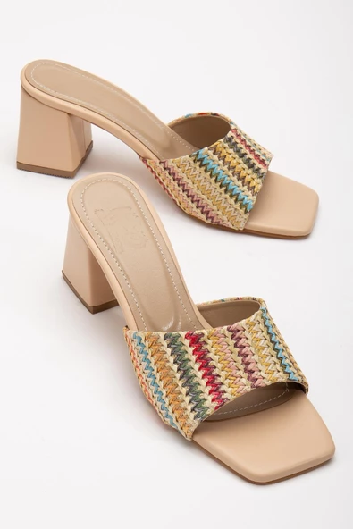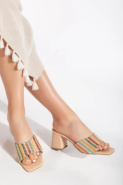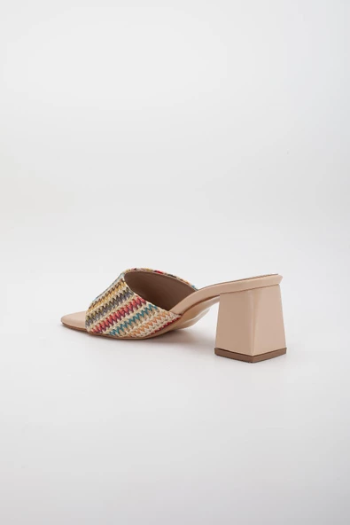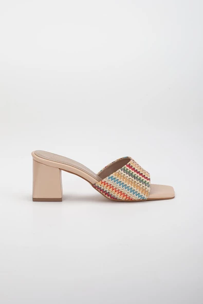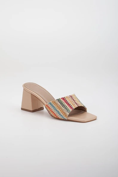 Hasır ve Düz Tekbant Nude Kadın Topuklu Terlik
