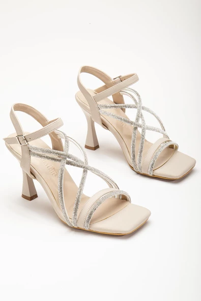 Tek Bant ve Bilek Taşlı Ten Kadın Abiye Ayakkabı