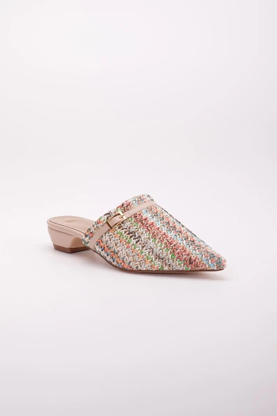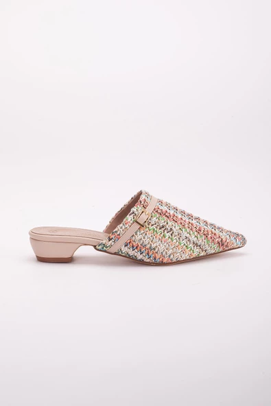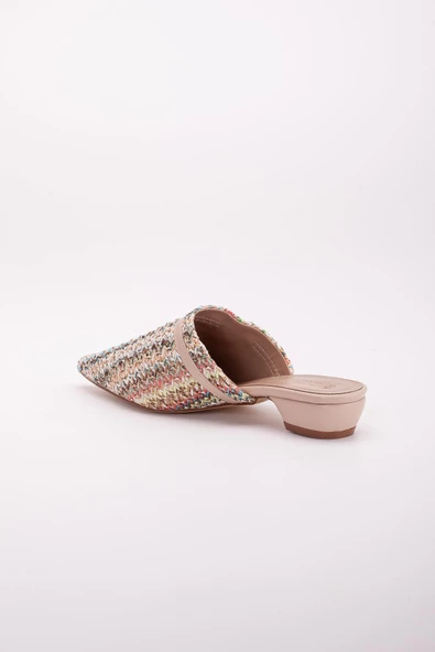 Yeni Hasır Malzeme Önü Kapalı Nude Kadın Kısa Topuklu Terlik
