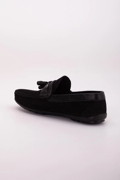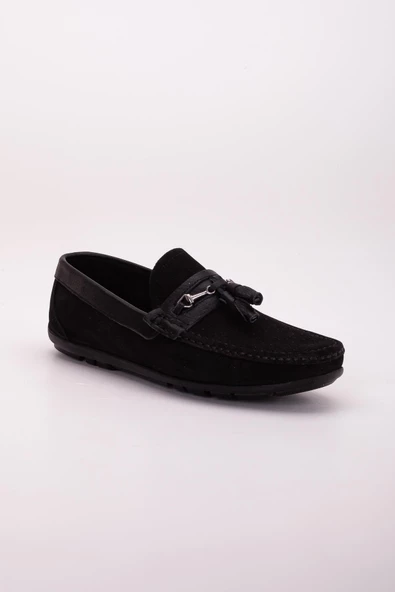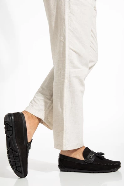 Hakiki Deri Nubuk Püsküllü Siyah Erkek Günlük Rok Ayakkabı