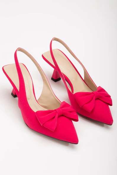 Büyük Numara Fiyonklu Saten Fuşya Kadın Topuklu Ayakkabı