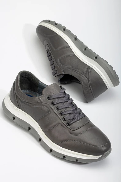 Hakiki Deri Erkek Günlük Ayakkabı Gri Eva Taban Yüzü Dikişli