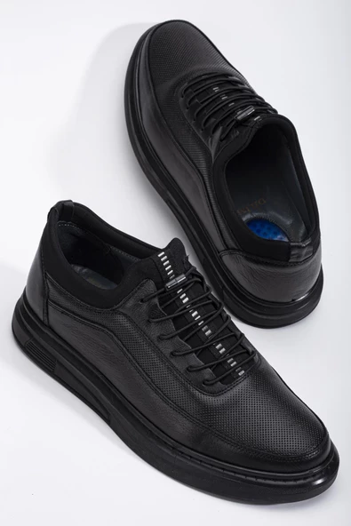 Hakiki Deri Ortopedik Erkek Günlük Ayakkabı Siyah Streç Elastik Bağcıklı