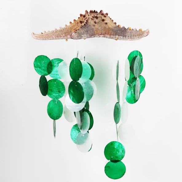 Yıldızlı Sedef Rüzgar Çanı -Beyaz Yeşil