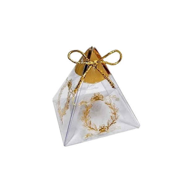 Piramit Asetat Kutu Üçgen Lokumluk Saray Desenli 6X6X6 (25 Adet) Altın