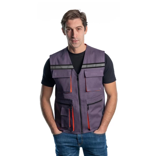 Şensel, Reflektörlü Yelek, Gri-Turuncu -118E2454- Dört Cepli
