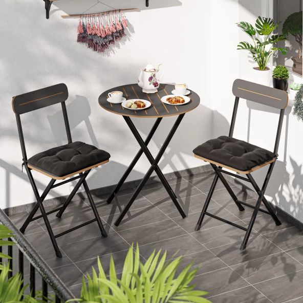 Eportatif Minderli Bistro Takım Bahçe Masa Sandalye Yuvarlak Füme 1486