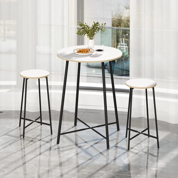 Eportatif Bar Masa Sandalye Seti Mutfak Yemek Masası Takımı Beyaz 1572