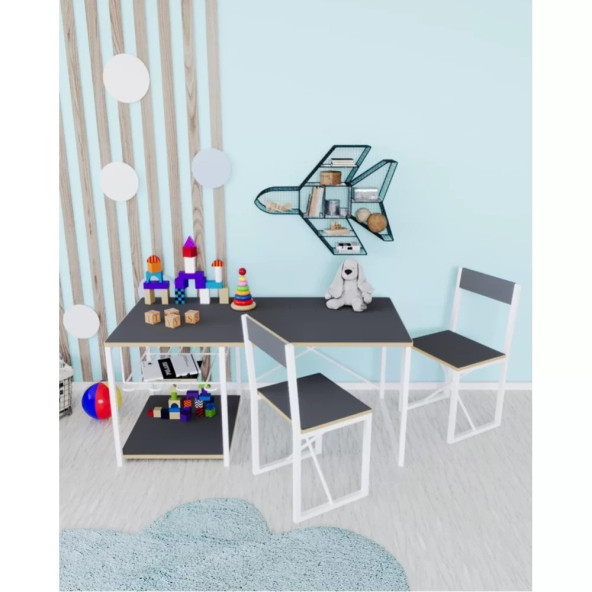 Eportatif çocuk çalışma masası ve 2 sandalyeli oyun etkinlik aktivite masası antrasit