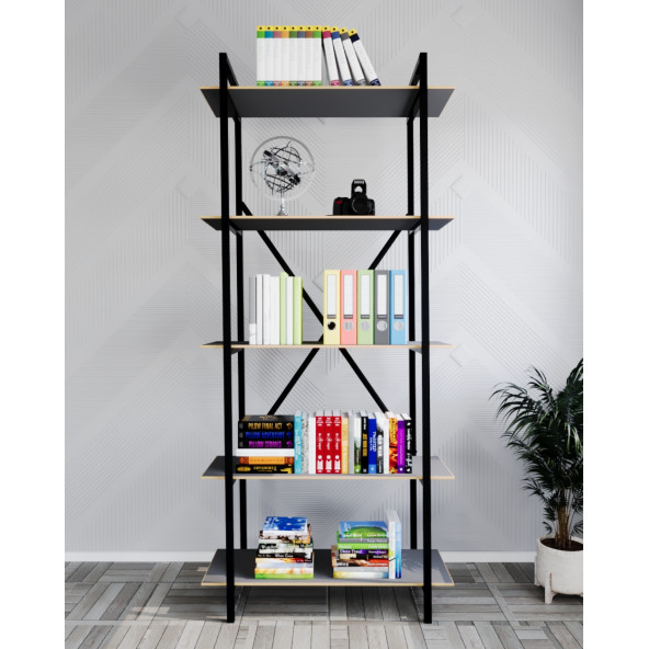 Eportatif Metal Kitaplık Raf 5 Raflı Kütüphane Füme 1354