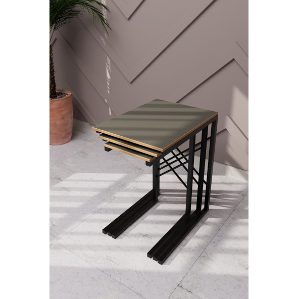 Eportatif 3'lü Zigon Sehpa Metal Dar Zigon Sehpa Füme 1366