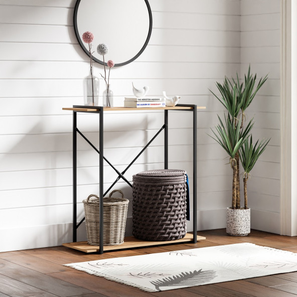 Eportatif Metal Ayaklı Dresuar Raflı Dresuar Dekoratif Metal Dresuar Çam 1376