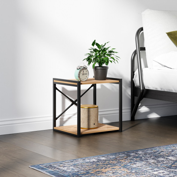 Eportatif Çok Amaçlı Komodin Metal Ayaklı Raflı Sehpa Çam 1382