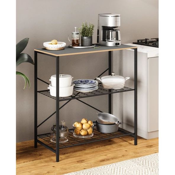 Eportatif Çok Amaçlı Mutfak Rafı Bangosu Masa Geniş Füme 1441