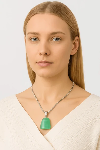 Sertifikalı AAA+ Yeşil Florit Taşı Kolye – Beşgen Model, Gümüş Aparatlı