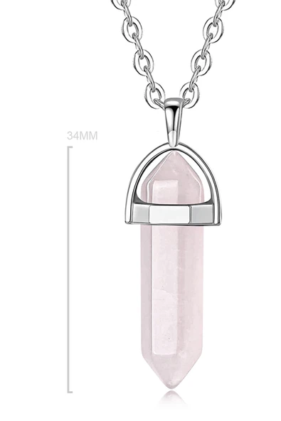 Sertifikalı Çivi Model Pembe Kuvars Taşı Kolye Doğal Pembe Kuvars Renk 50 cm