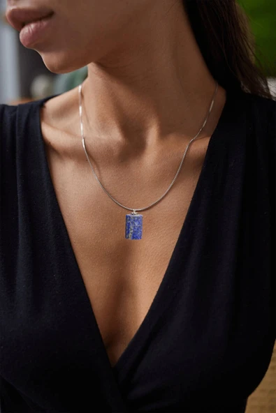 Sertifikalı Yüksek Kalite Fasetli Doğal Lapis Lazuli Taşı Kolye Doğal Mavi Renk 50 cm