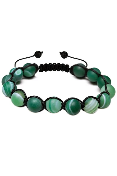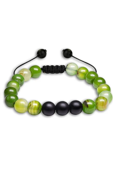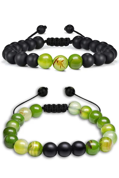 Sertifikalı Doğal Yeşil Akik Oniks Taşı Doğal Taş Bileklik Seti