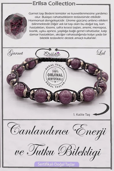 Sertifikalı AAA+ Kalite Doğal Lal Garnet Canlandırma Enerji Tutku Bilekliği