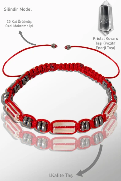 Sertifikalı Gerçek Hematit - Kristal Kuvars Taşı Bileklik - Ayarlamalı