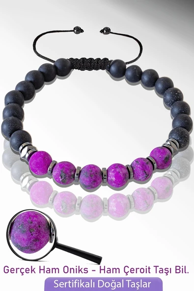 Sertifikalı Doğal Ham Oniks - Çeroit Taşı Bileklik - Ayarlamalı