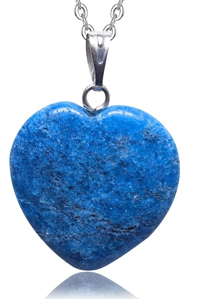 Sertifikalı Doğal Kalp Mavi Akik Taşı Kolye
