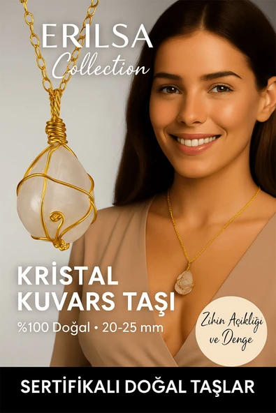 Sertifikalı Doğal Gold Renkli Tel Sargılı Kristal Kuvars Taşı Kolye – Zihin Açıklığı ve Denge Taşı