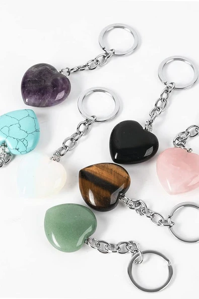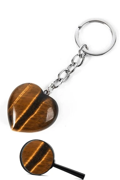 Sertifikalı Kalp Kesim Kaplan Gözü Taşı Doğal Taş Anahtarlık