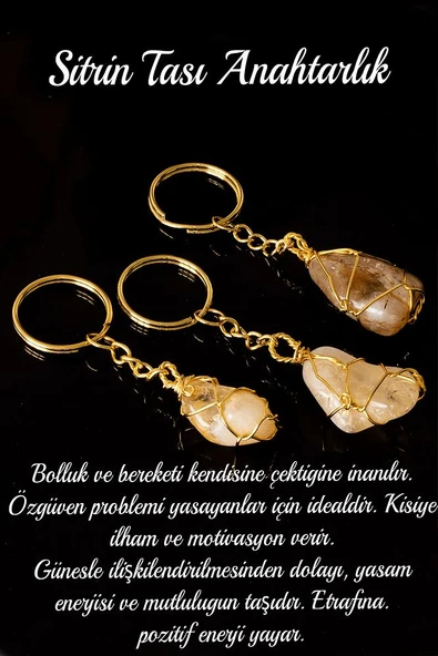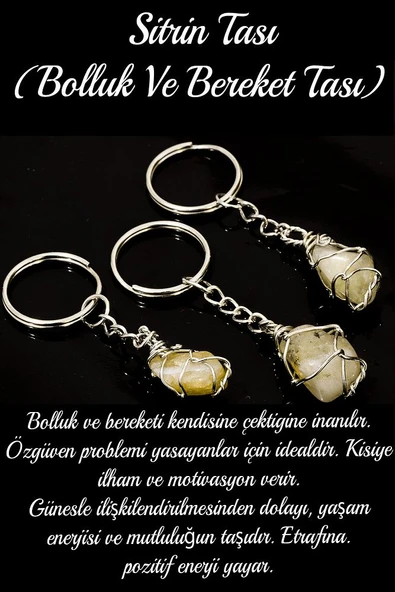 Sertifikalı Tel Sargılı Ham Sitrin Taşı Anahtarlık