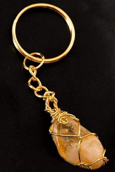 Sertifikalı Tel Sargılı Sitrin Taşı Anahtarlık - Altın Kaplama