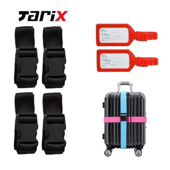 tarix 4 adet Siyah Valiz kemeri + 2 adet kırmızı valiz etiketi