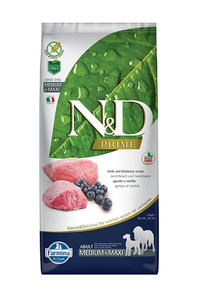 N&D Tahılsız Kuzulu&Yabanmersinli Orta-Büyük Irk Yetişkin Köpek Maması 12 Kg