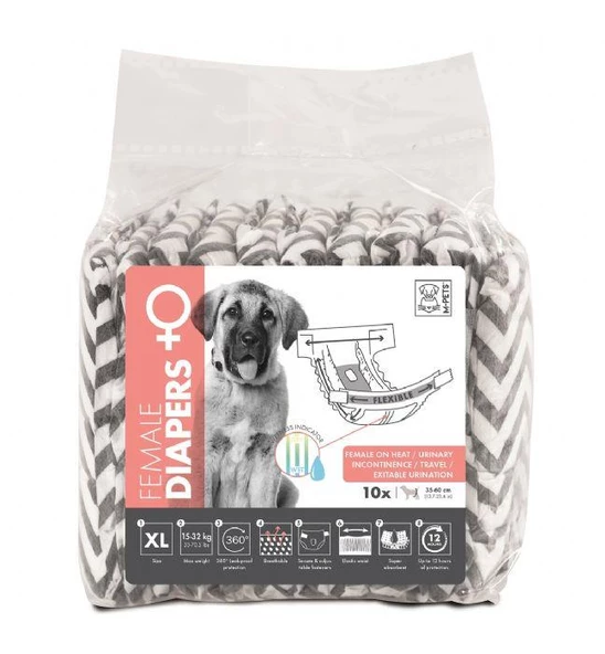 M-PETS DIAPERS DİŞİ KÖPEKLER İÇİN KÜLOT (XL) 10LU