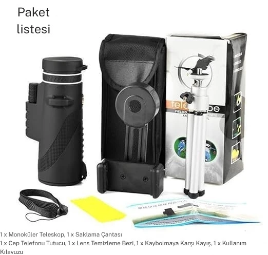 TechTic 40x60 Dürbün Ultra Zoom Monoküler Teleskop El Dürbünü 8000mt Pusula Tripot Telefon Tutucu