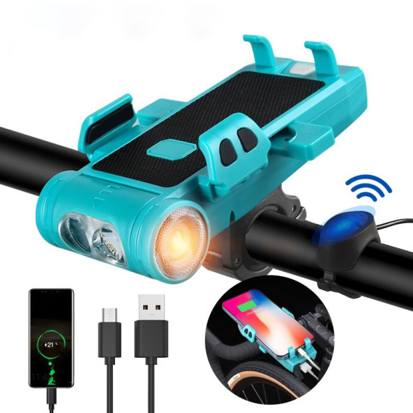 TechTic 5in1 Bisiklet Feneri Şarjlı Telefon Tutucu+Korna +Sis Farı 3500Mah PowerBank Scooter Lambası