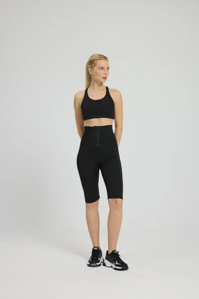Toparlayıcı Termal Sauna Yüksel Bel Agraflı Şort