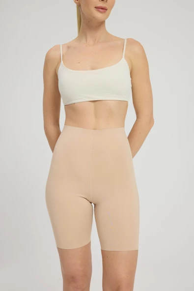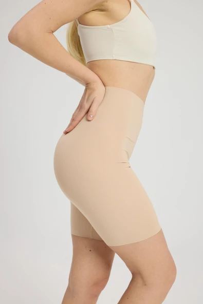 Toparlayıcı Lazer Kesim Yüksek Bel Boxer Şort Korse Ten