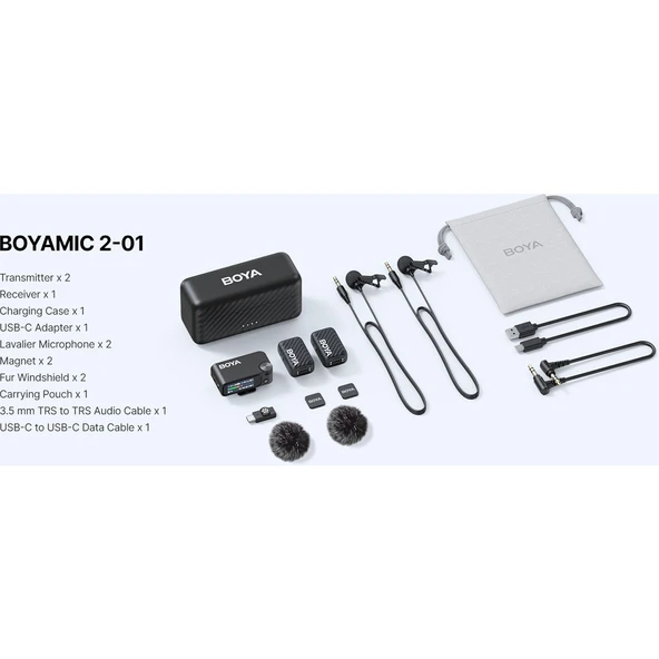 Boya Boyamic 2-01 Profesyonel Çift Mikrofonlu Mfi Sertfikalı Dahili Hafızalı Kablosuz Mikrofon