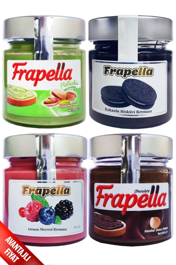 Frapella Orman Meyvesi Kreması Ve Antep Fıstık Kreması Mix Paket 4 X 220 Gr.