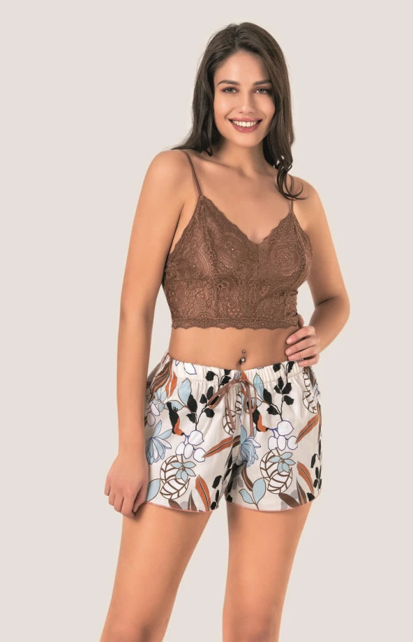 GBMOTİON Desenli Empirme Braledli Şort Takım Model 569