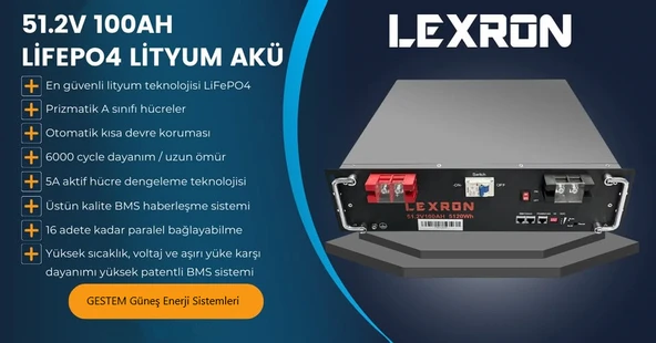 LEXRON 51.2V 100Ah LİFEPO4 BATARYA